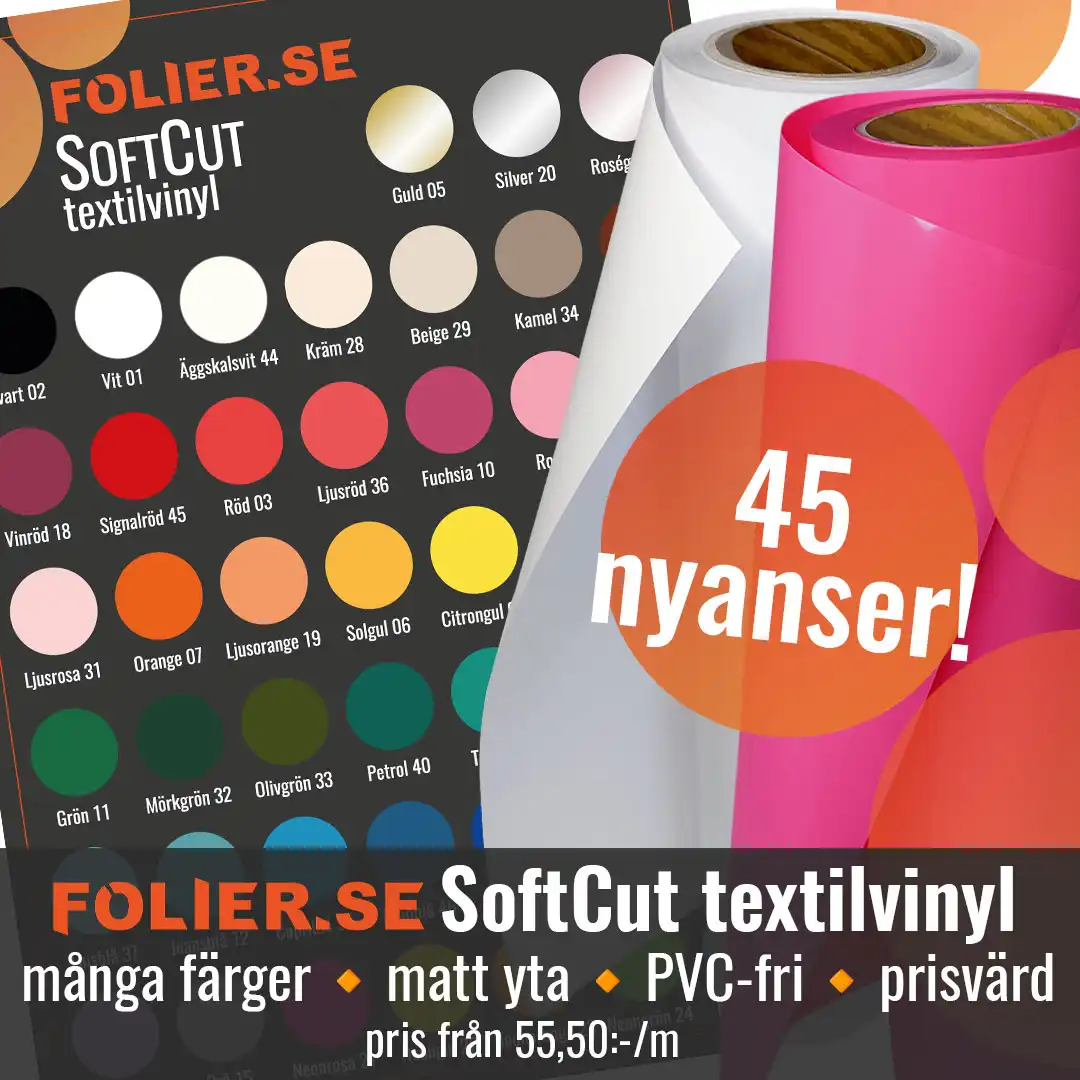 Folier.se är det lilla företaget med den stora kompetensen inom maskiner och material för tryck på kläder och hårda ytor! När du vill ta steget för att starta eller utveckla din tryckverksamhet, erbjuder vi dig både stöd och expertis inom områden som till exempel DTF och DTG, skärplottrar och sublimering. Vi samarbetar med kända leverantörer för skärplottrar, skrivare, transferpressar och material.
