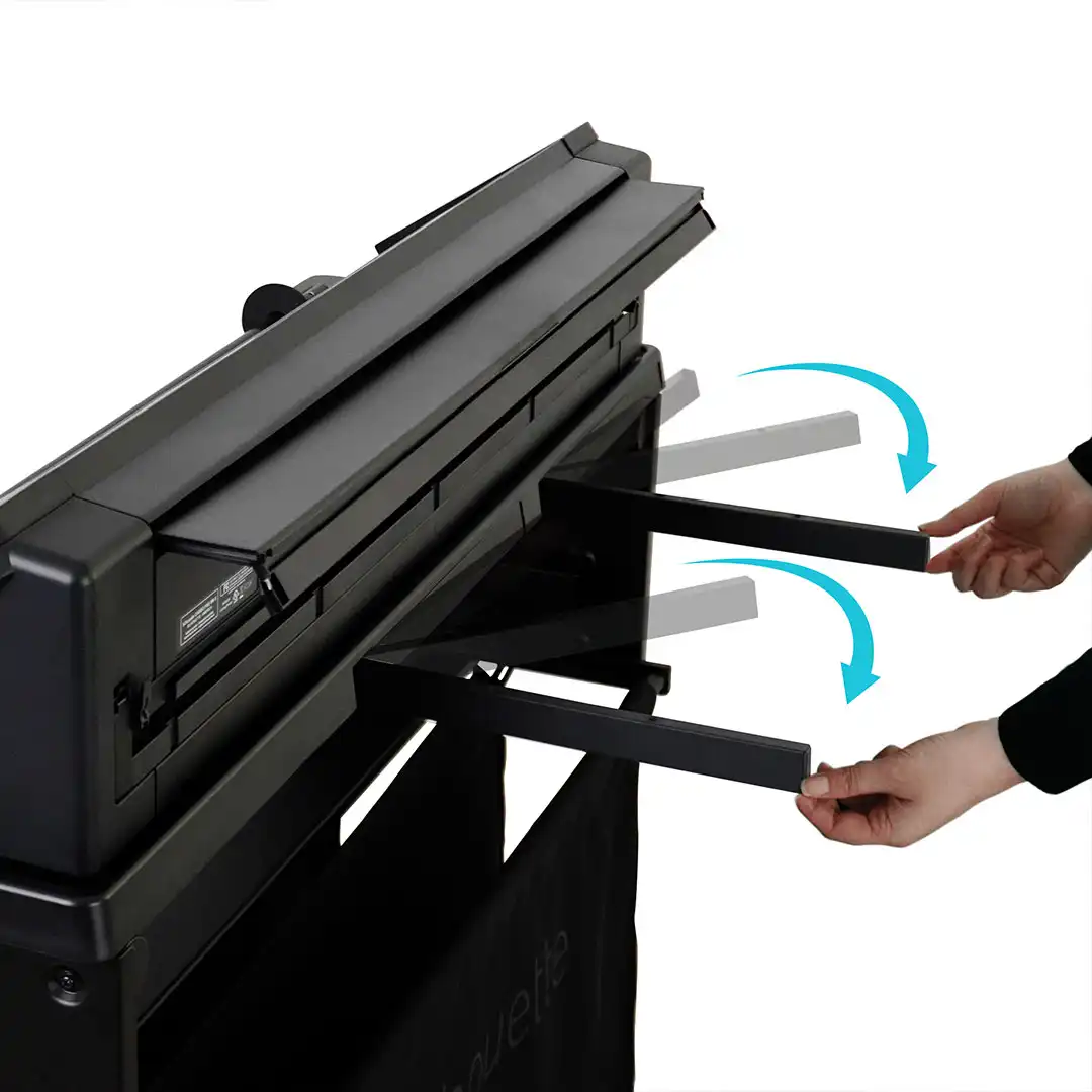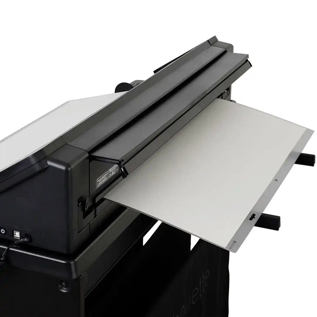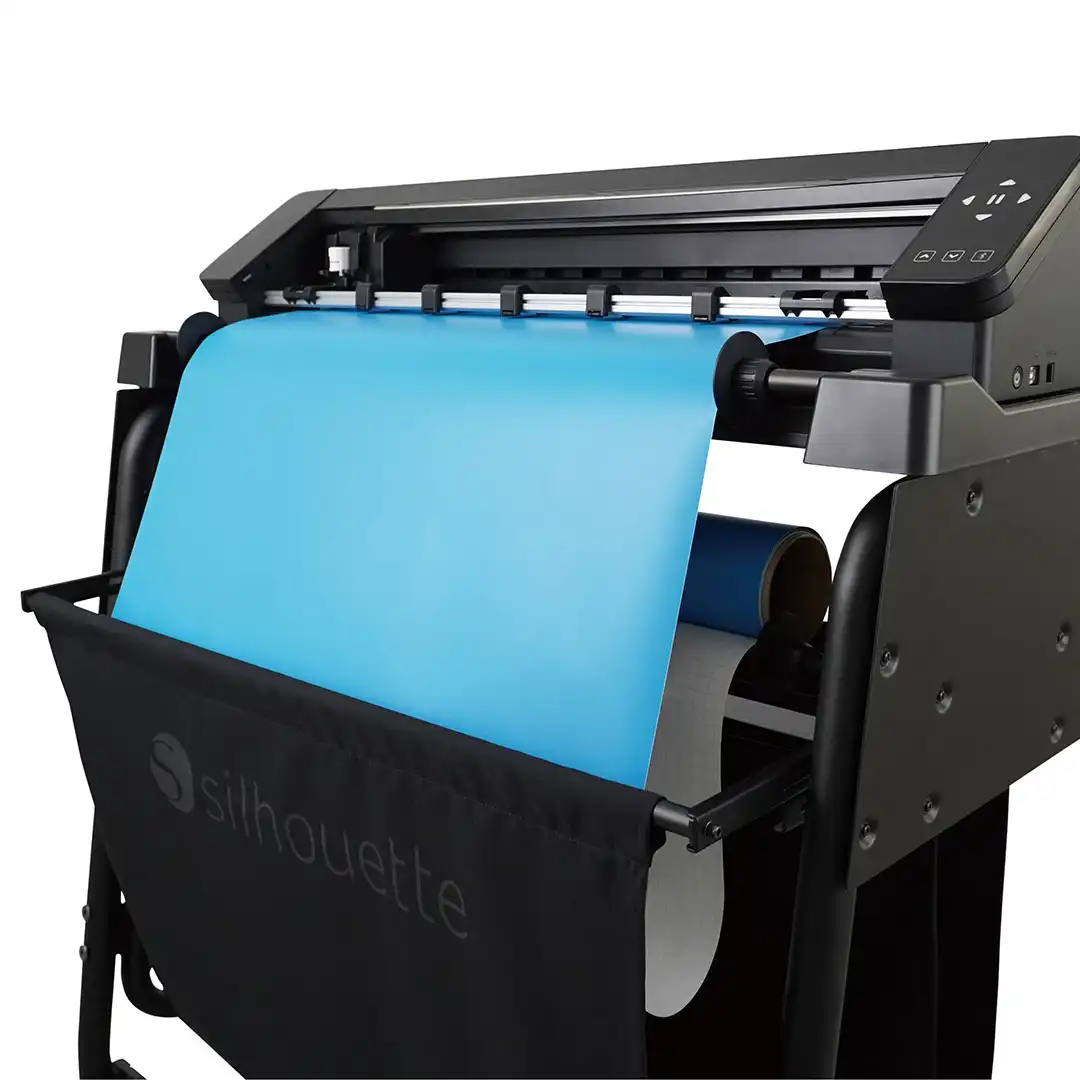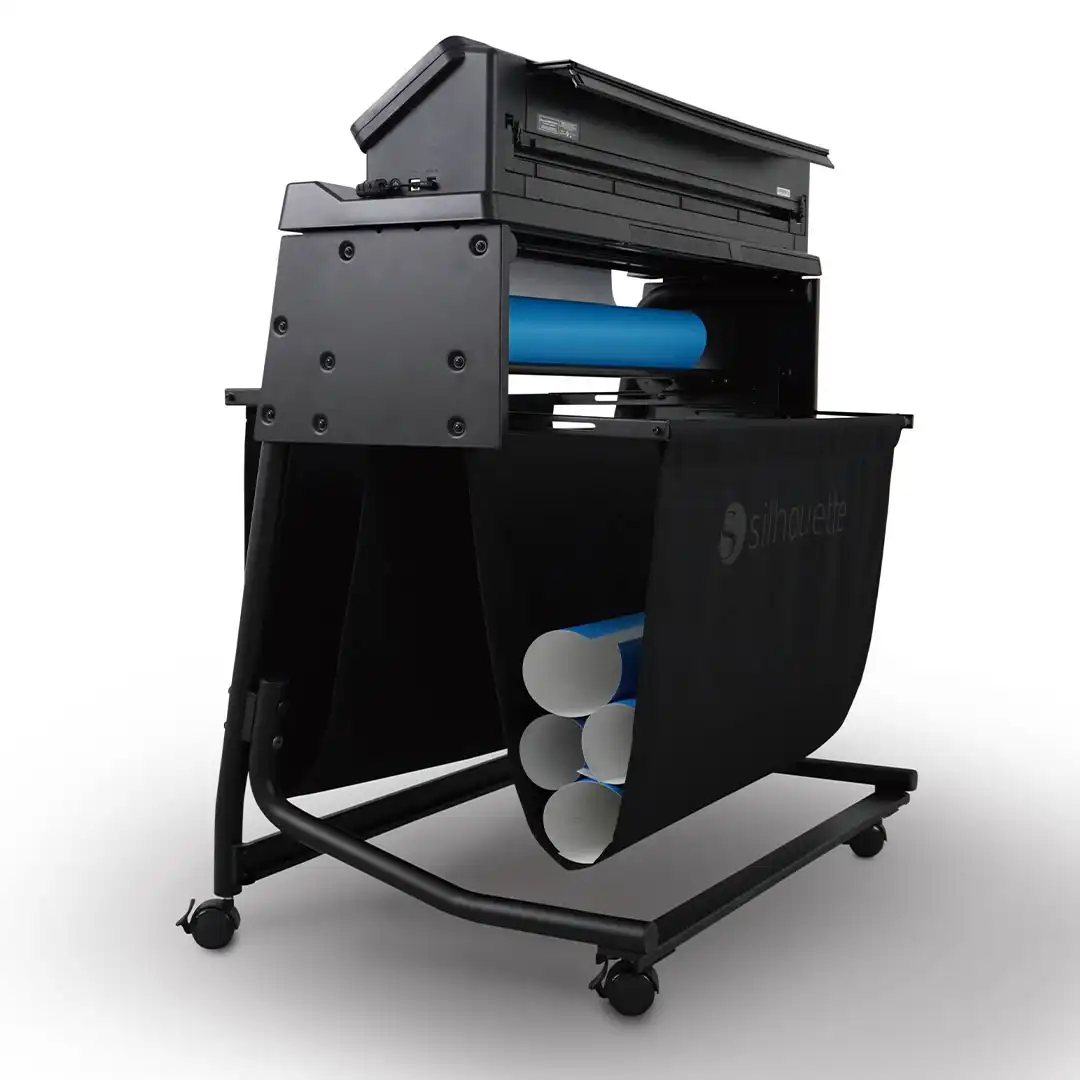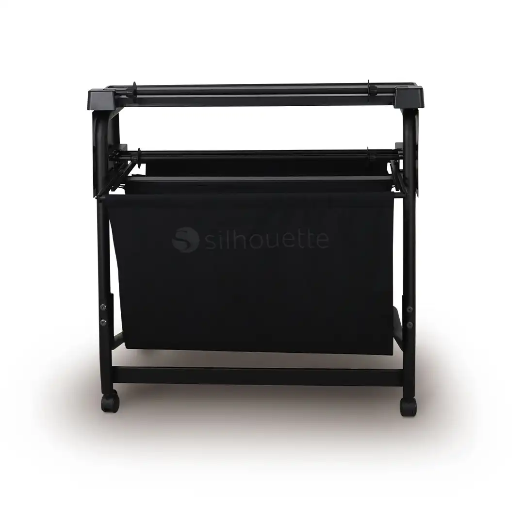 Silhouette benställning för Silhouette Cameo PRO MK-II ger en stabil och bekväm plattform för din maskin samtidigt som det erbjuder en praktisk lösning för att hantera långa material. Den antistatiska mediakorgen fångar upp långa material, vilket förhindrar att de släpas på golvet och minskar statisk elektricitet. Dessutom har stativet hjul, vilket möjliggör enkel förflyttning till vilken plats som helst.