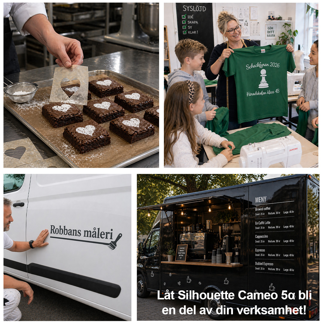 Silhouette Cameo 5α (Alpha) öppnar dörren till fler kreativa möjligheter än du visste att du hade. Skär vinyl, papper, kartong, etiketter, tyg och specialmaterial med kraft och precision – direkt på ditt skrivbord. Med Cameo 5α får du en kraftfull följeslagare som gör det lättare att förverkliga idéer, skapa personliga projekt och ge vardagen en rejäl dos kreativ glädje. En maskin som gör både arbetsflödet och livet lite roligare. Silhouette Cameo 5α är den senaste modellen i en rad framgångsrika skärplottrar från Silhouette. Cameo 5α är en uppdaterad version av Cameo 5, med bland annat förbättrad justering av matarhjulen, ökad precision vid Print & Cut med 4-punktsregistrering och ökad hastighet upp till 400mm/s. Läs mer »